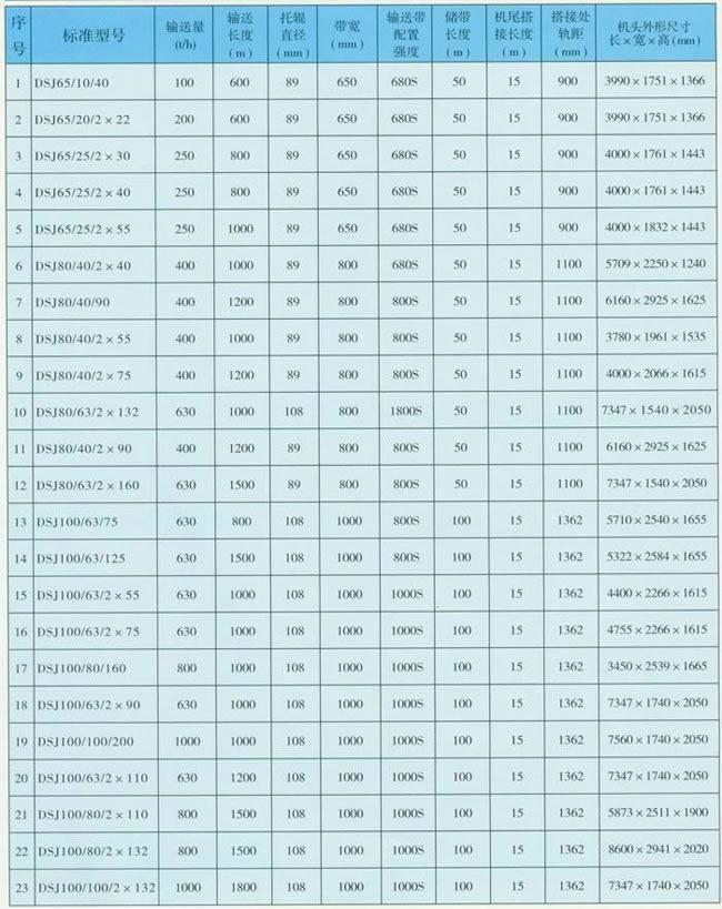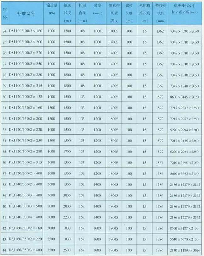 3、煤礦井下用可伸縮帶式輸送機(jī)主要技術(shù)參數(shù):